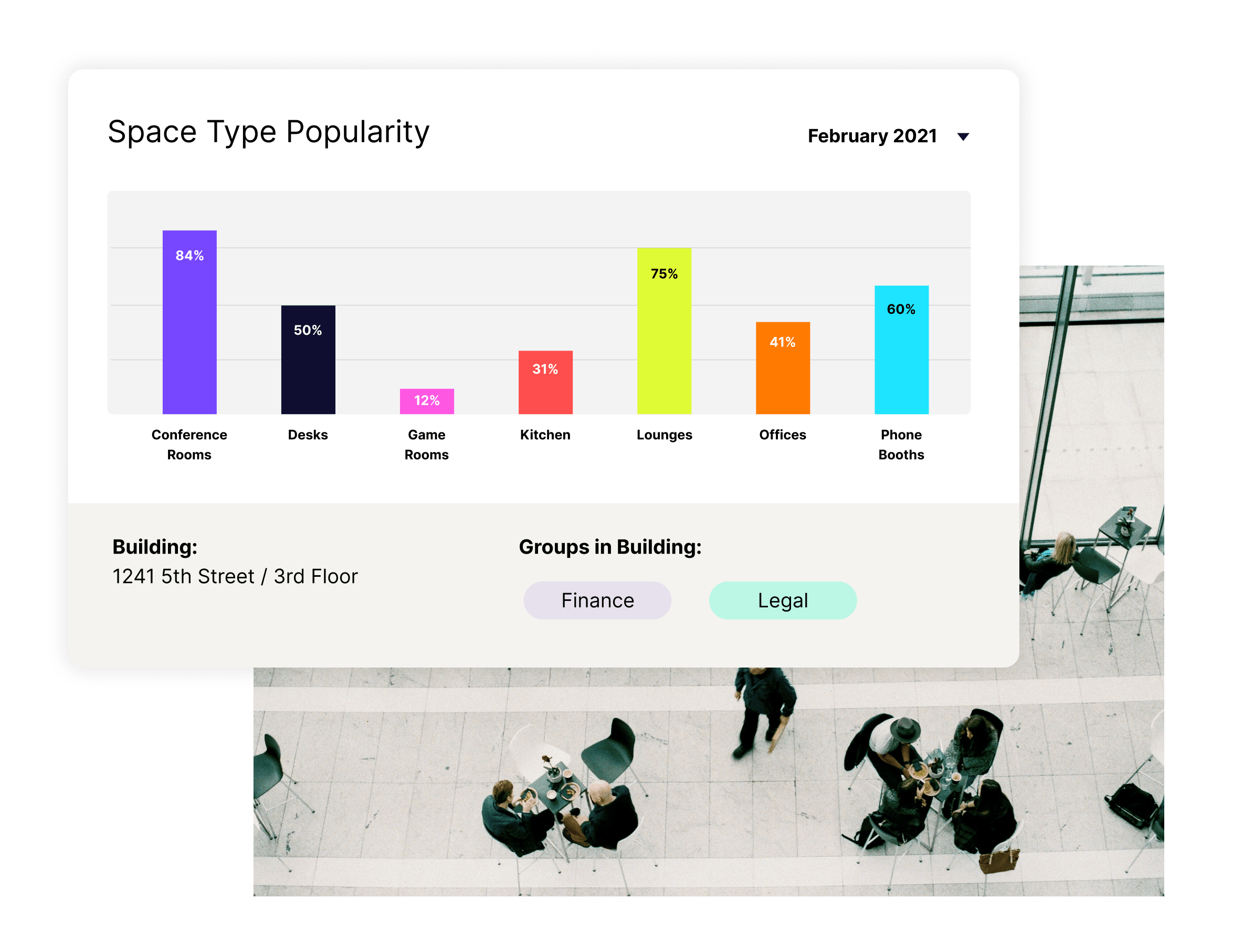 VergeSense workplace analytics are powered by deep-learning sensors that count people across the office. Understand usage and occupancy of buildings, seating areas, conference rooms, all the way down to individual desks.